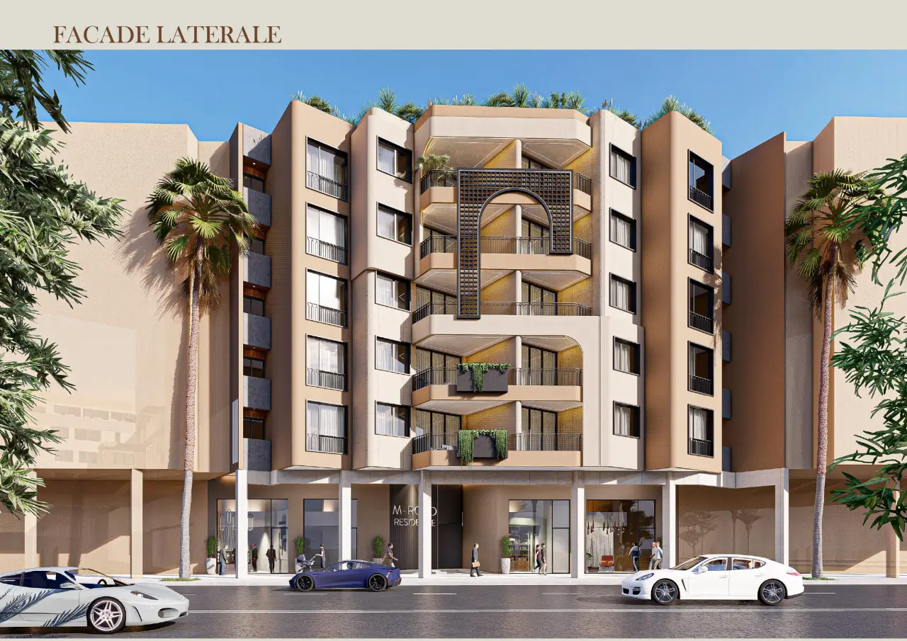 Découvrez une résidence d’exception R+5 au design contemporain sublimé par l’élégance marrakchie, composée de studios, appartements et duplex aux finitions haut de gamme.