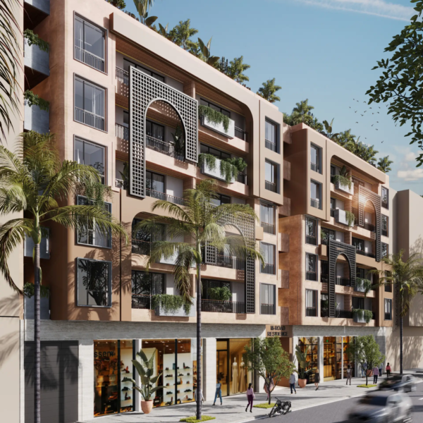 Découvrez une résidence d’exception R+5 au design contemporain sublimé par l’élégance marrakchie, composée de studios, appartements et duplex aux finitions haut de gamme.